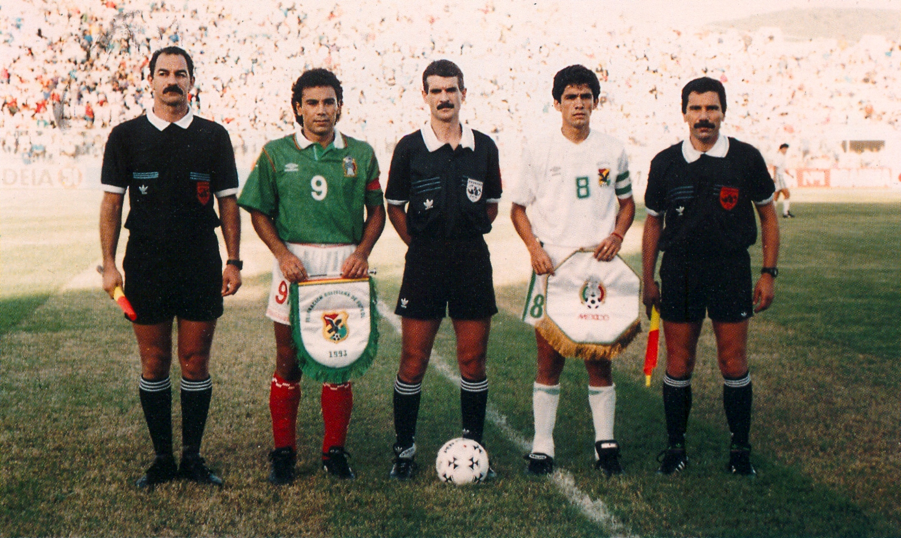 Copa América 1993. Milton Melgar, el mediocampista de oro del fútbol nacional, al lado de Hugo Sánchez el goleador histórico de la selección mexicana. El partido terminó 0 a 0.