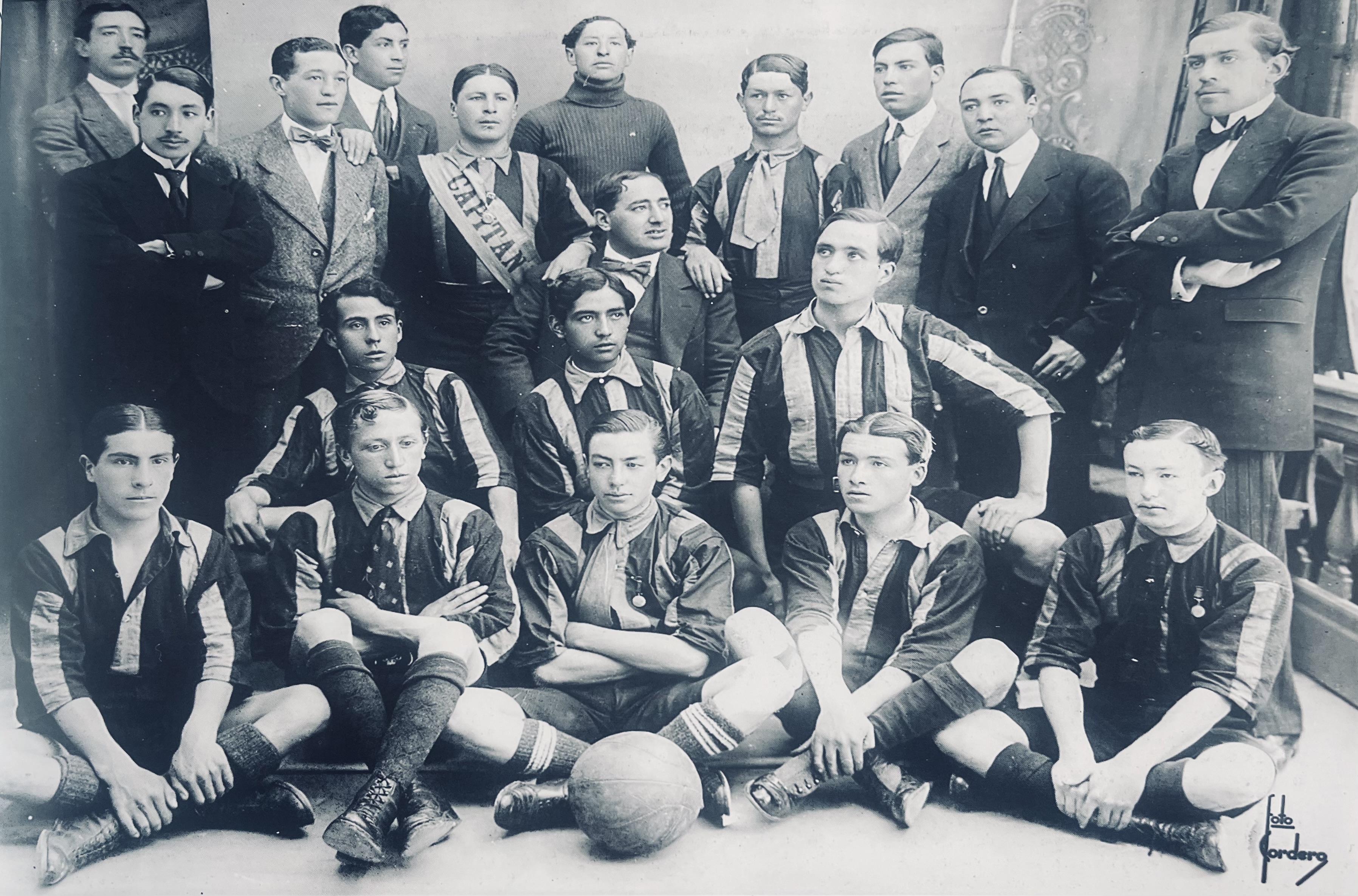 The Strongest el primer campeón de la historia del fútbol boliviano. Ganó en 1914 el campeonato oficial de la LPFA. En la foto Ramón González (capitán), José Prado (presidente) sentado. Entre sus jugadores están Juan González, Alberto Granier, César Andrade, Adrián Deheza, Alberto Martínez, Hugo Alipaz, Víctor Manuel Franco, Humberto Montes, Armando Elío y Willy Montes (foto Cordero, del libro «Rugido centenario, historia de The Strongest football club).