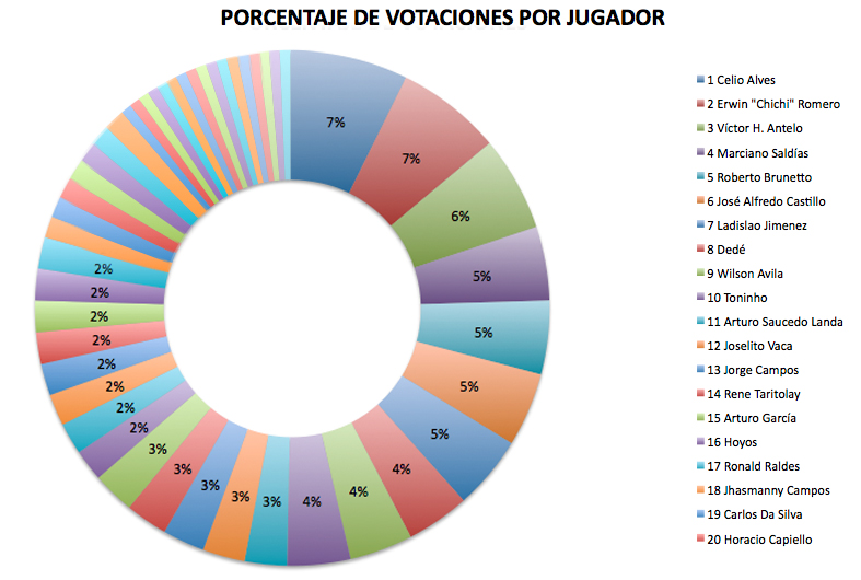 El resultado ha sido tabulado en un cuadro estadístico que incorpora los porcentajes que muestran cuántas veces han sido mencionados los jugadores, luego una lista de los 10 “ganadores” y finalmente una lista más exhaustiva de todos los jugadores mencionados.
