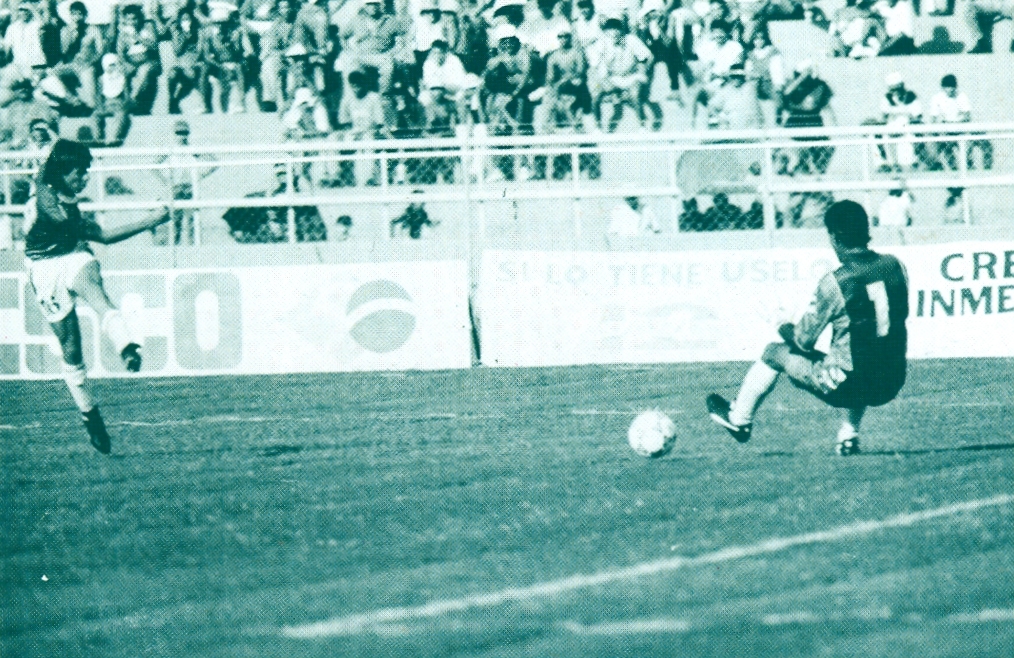 La pelota, tras impresionante remate de Sánchez, es rozada por Espinoza, pega en el travesaño y vuelve al campo donde el «Pescador del área», Ramallo, la cabecea de palomita y anota el gol de la victoria.