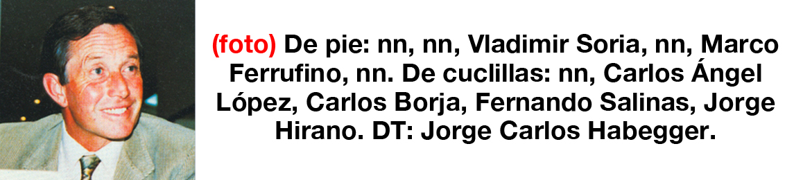 Bolivar de 1996 los que estan parados son : Castillo, Zaiduni, Tito Montaño, Miguel Rimba, Soria NKono y Sandy, de cuclillas Cristaldo, nn, Baldivieso, Ochoayzpur y Gonzales.