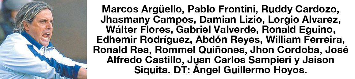 Para la de 2002, la alineación de la foto es: Gonzalo Galindo, José Carlo Fernández, Oscar Sánchez, Martín Ligori, Rubén Tufiño, Marco Sandy, Percy Colque, Joaquín Botero, Luis Ribeiro, Daner Pachi y Pedro Guiberguis.