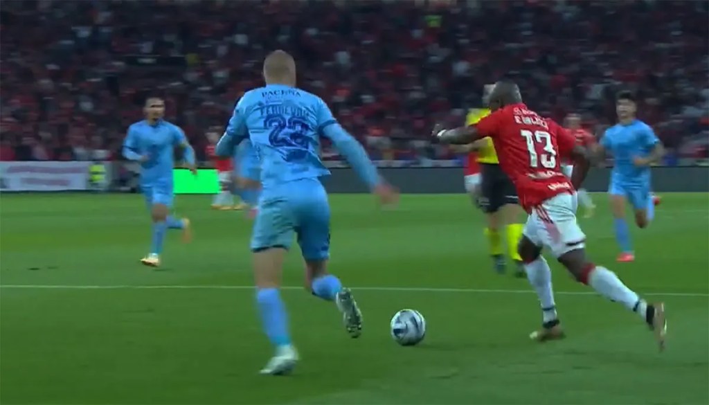2023. Bolívar se queda en cuartos, al ser derrotado por Internacional de Brasil. En la imagen Ferreira marca a valencia en Porto Alegre.