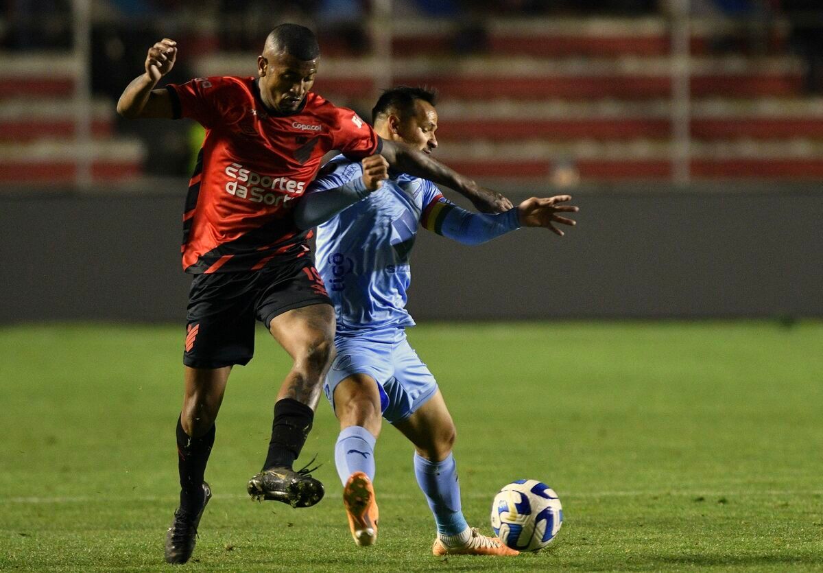 2023. Bolívar pasa a cuartos superando a A. Paranaense. En la imagen el capitán celeste Justiniano en el partido de ida que el club boliviano ganó por 3 a 1.