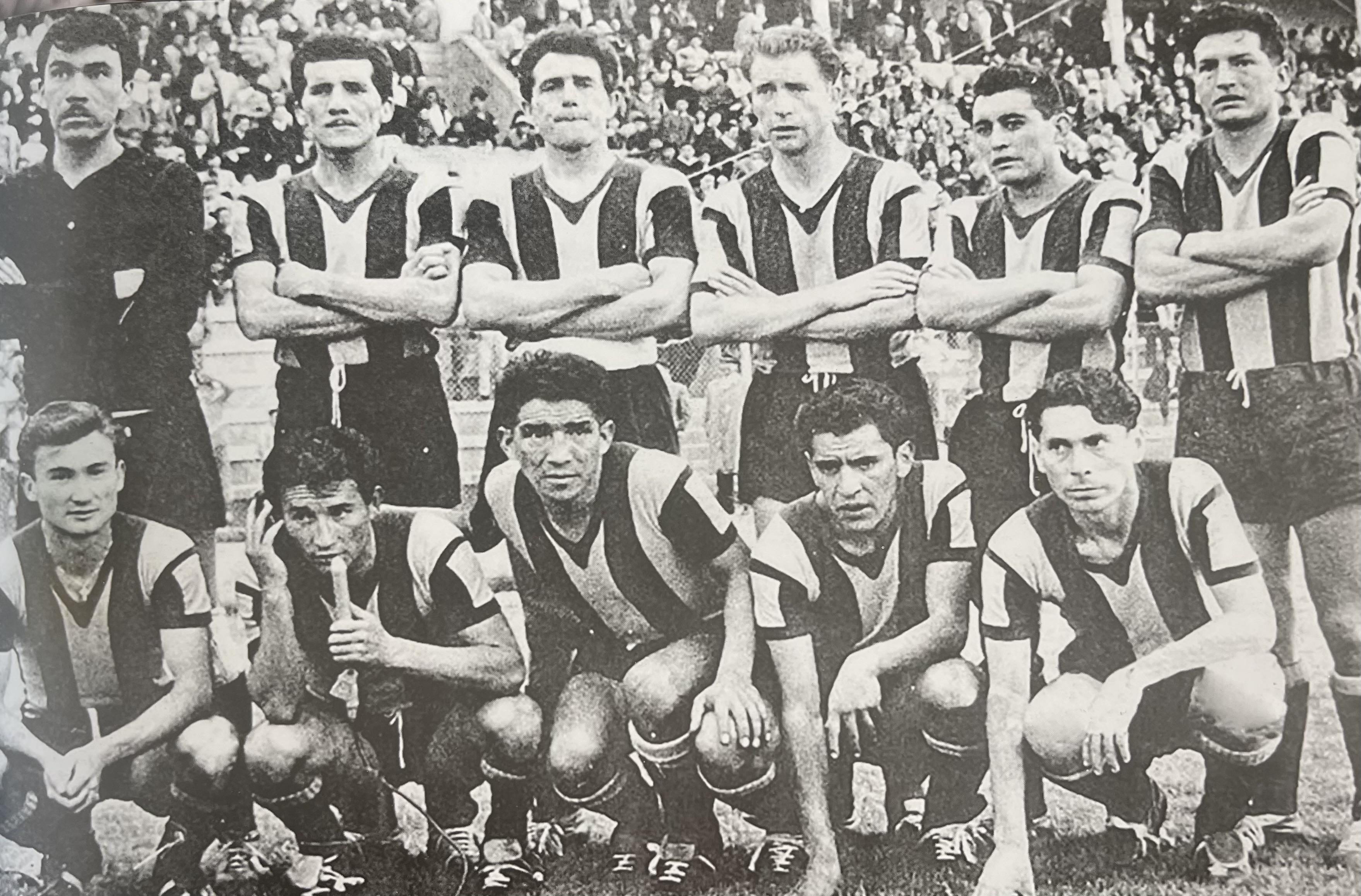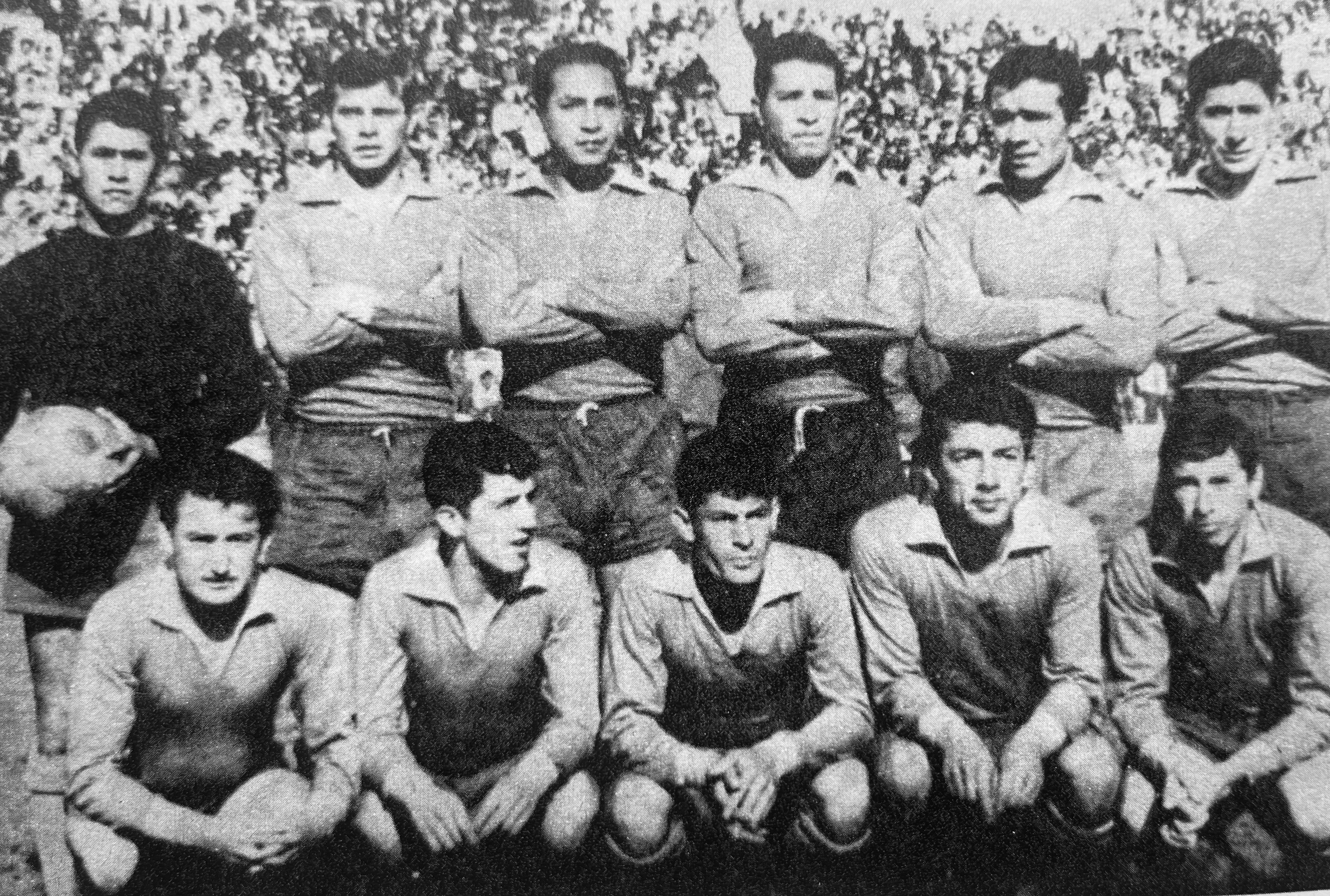 1963. The Strongest campeón paceño: Soliz, Salinas, Di Lorenzo, Ballesteros, Gutiérrez y Dueñas; Petri, Morales, Cárdenas, Vargas y Moreno (foto del libro «Rugido centenario»).