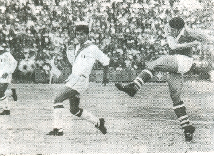 1969. Bolivia 2 Perú 1. En la imagen Juan Américo Díaz remata al arco. La selección peruana es el rival histórico más débil en La Paz en juegos por Eliminatorias. Nunca ganó un partido en cancha. Su único triunfo en La Paz lo obtuvo en 2016 por decisión de la FIFA de otorgarle un triunfo por mala habilitación de un jugador boliviano
