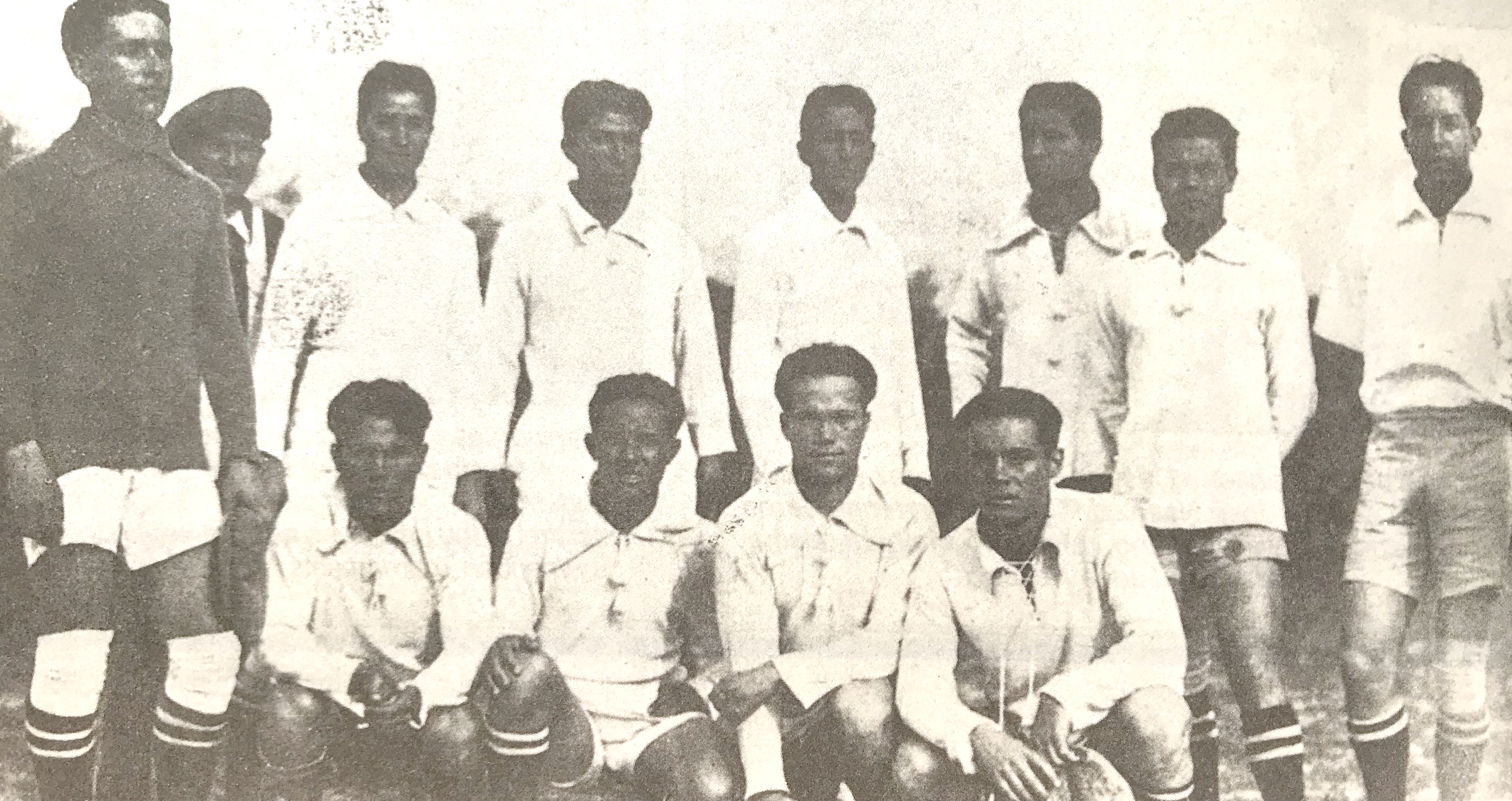 Selección boliviana en 1926. Teófilo Aguilar anotó el primer gol de Bolivia en la competencia. En la imagen el primero a la izq. de cuclillas.