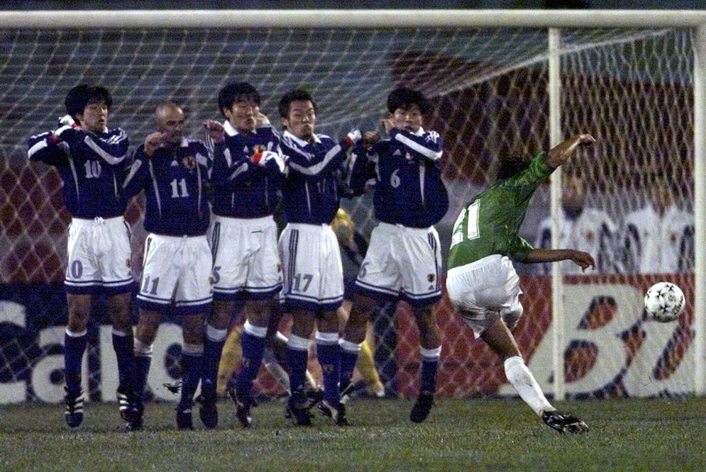 Erwin Sánchez, anotó un gol en el empate frente a Japón. En la imagen en el tiro libre decisivo frente a los nipones en la Copa América 1999.