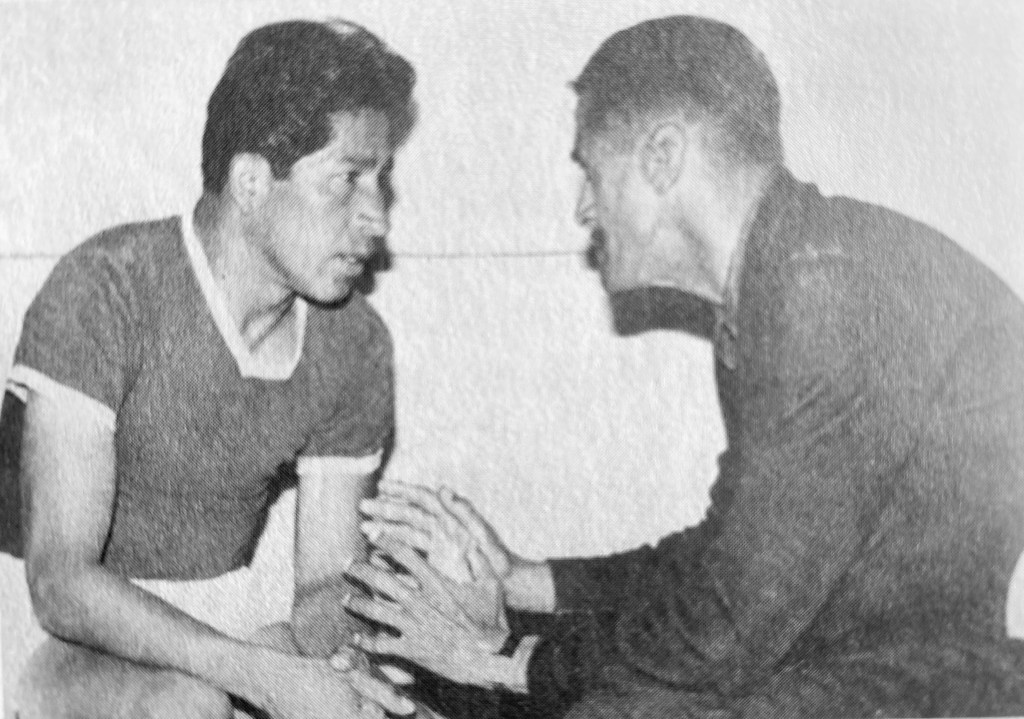 Ugarte, con 11 goles, máximo artillero boliviano en la Copa América. En la imagen conversa con el DT de Bolivia en 1963, Danilo Alvim.