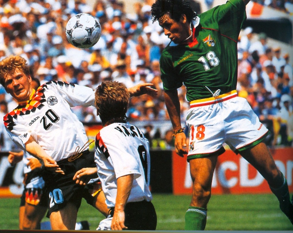 La selección tuvo el privilegio de jugar el partido inaugural contra el campeón mundial de 1990, la selección alemana. Fue el 17 de junio de 1994 en el estadio Soldier Field de Chicago, ante 63.117 espectadores, el número más alto de espectadores en un partido mundialista jugado por el equipo nacional. No ocurrió lo previsible. Alemania no fue una tromba y Bolivia no fue un convidado de piedra. Los germanos apostaron a un ataque vertical sobre la base de Klinssmann como un ‘panzer’ y apoyado por la técnica de Riedle. Los bolivianos tardaron en organizarse, pero en cuanto el balón fue trabajado con talento por Melgar (el mejor jugador de la cancha) los tiempos fueron de los verdes. El toque en un tic-tac perfecto llevó el juego al medio campo y fue administrado por Bolivia. El único gol llegó en el segundo tiempo. Trucco salió fuera del área ante la evidencia de una defensa desfondada y resbaló en la cancha mojada. Remate suave Klinssmann ante arco vacío y gol, el único de un encuentro que fue muy parejo. El ingreso del símbolo de Bolivia generó mucha expectativa. Menos de tres minutos después, una jugada fuerte de Matthaus en su contra, provocó una reacción del Diablo. El árbitro, Arturo Brizzio de México, que como mucho debió sacar amarilla, expulsó al jugador nacional y le frustró el mundial.