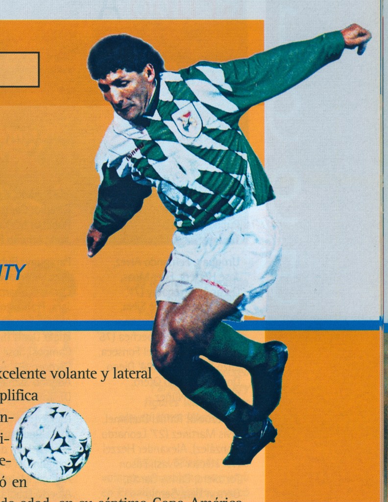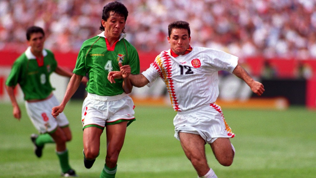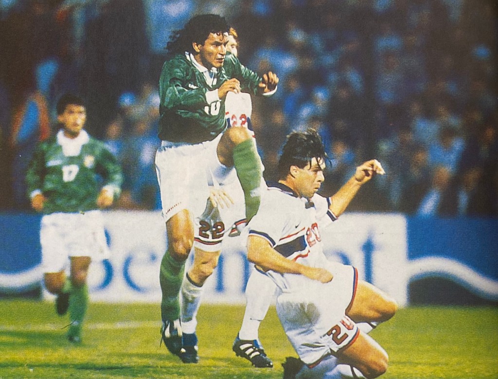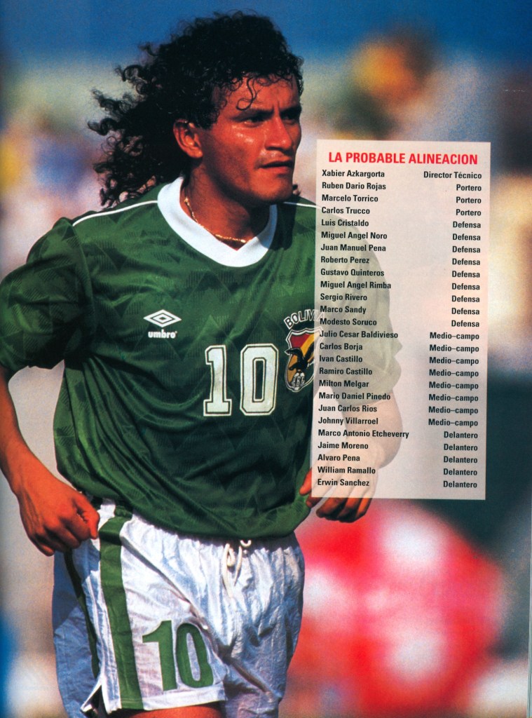 Bolivia en el Mundial de 1994. Erwin «Platiní» Sánchez anotó el primer gol de la selección en este torneo. Lo hizo frente a España.