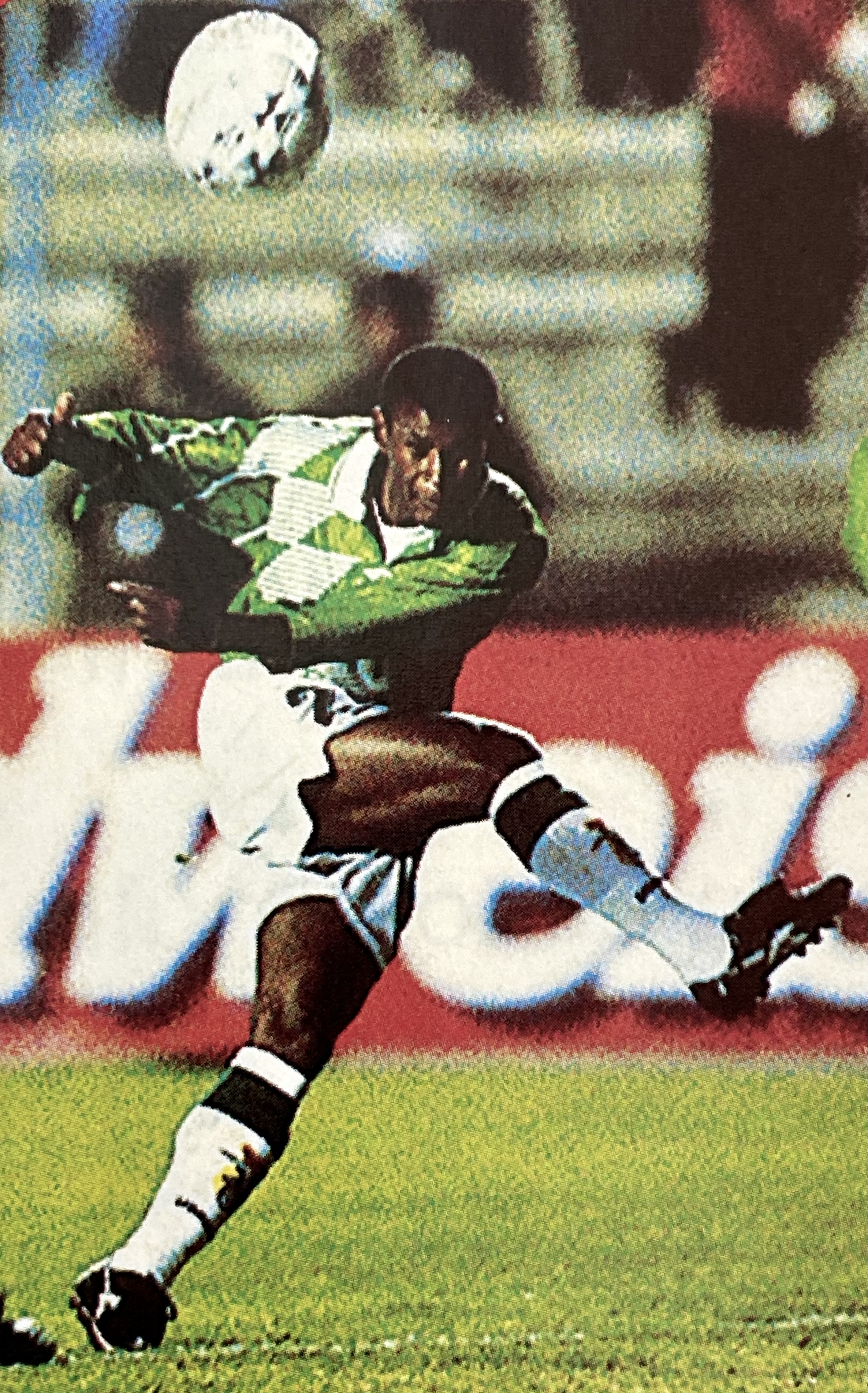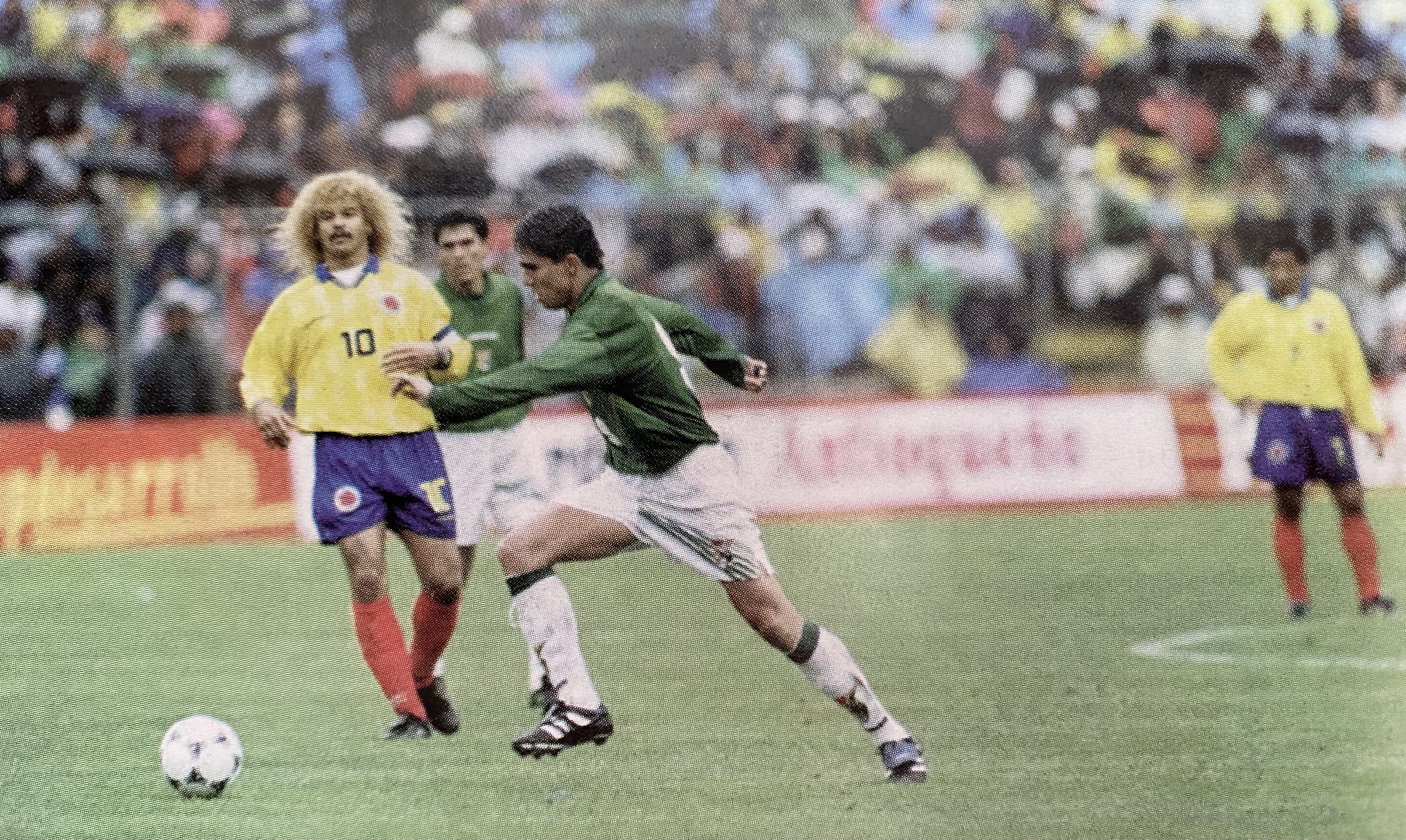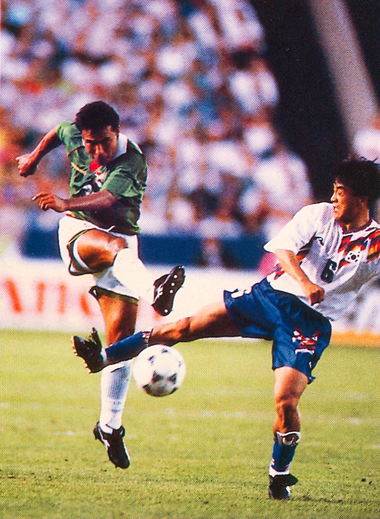Bolivia en el Mundial de 1994. Erwin «Platiní» Sánchez anotó el primer gol de la selección en este torneo. Lo hizo frente a España.