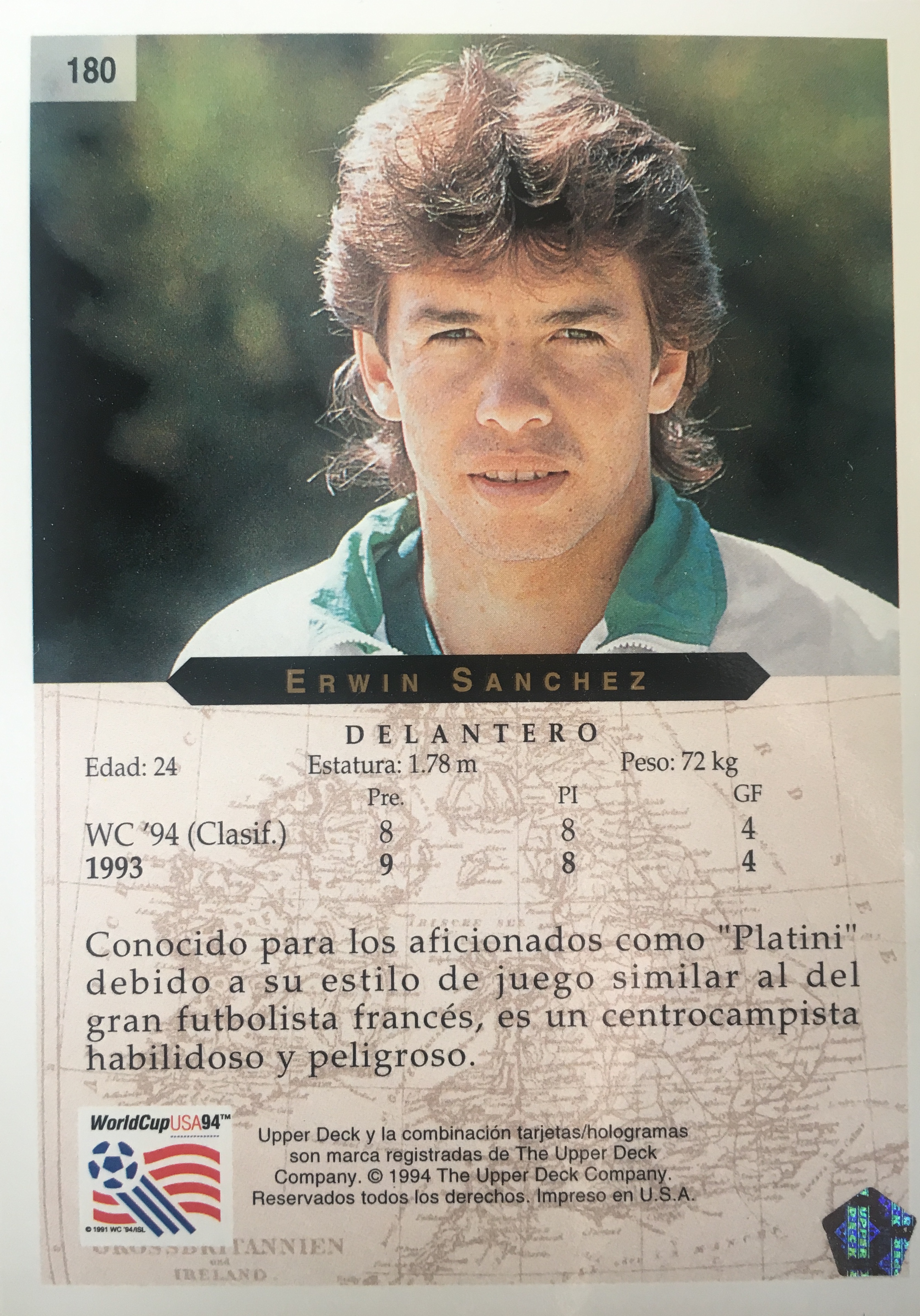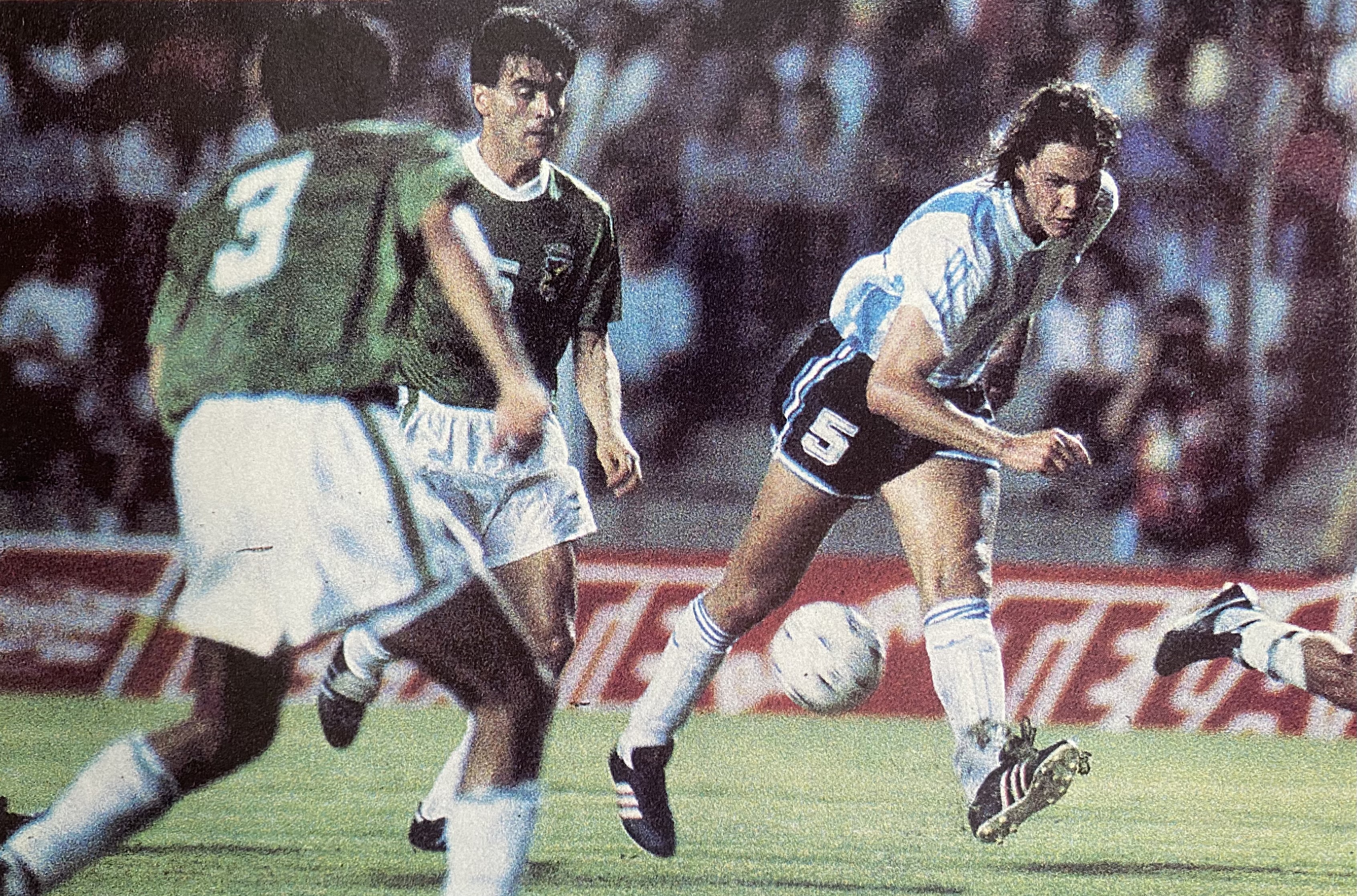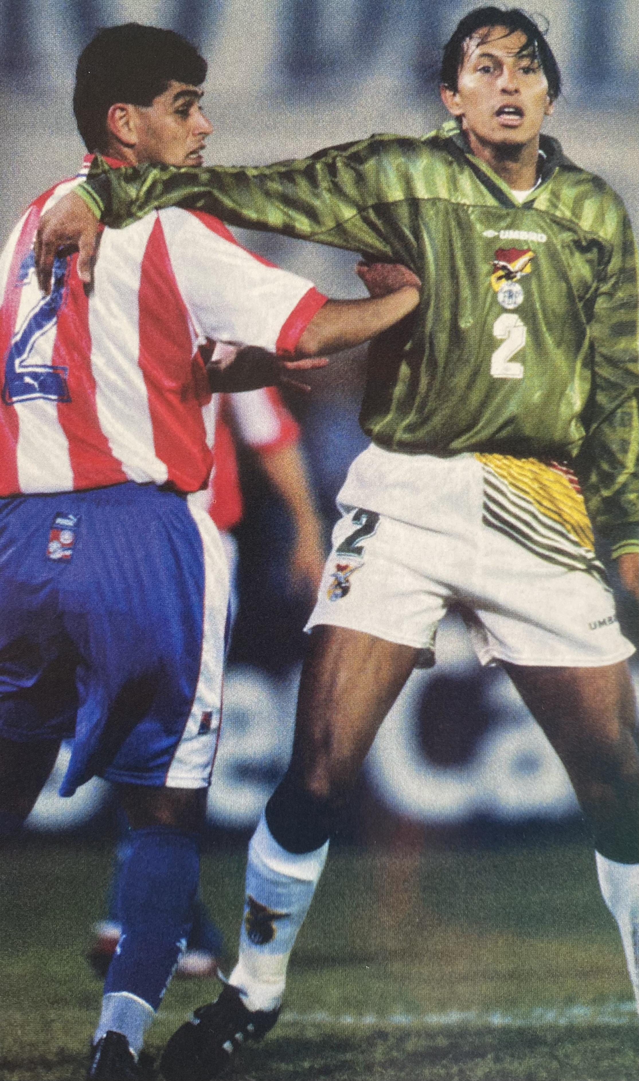 Bolivia en el Mundial de 1994. Erwin «Platiní» Sánchez anotó el primer gol de la selección en este torneo. Lo hizo frente a España.