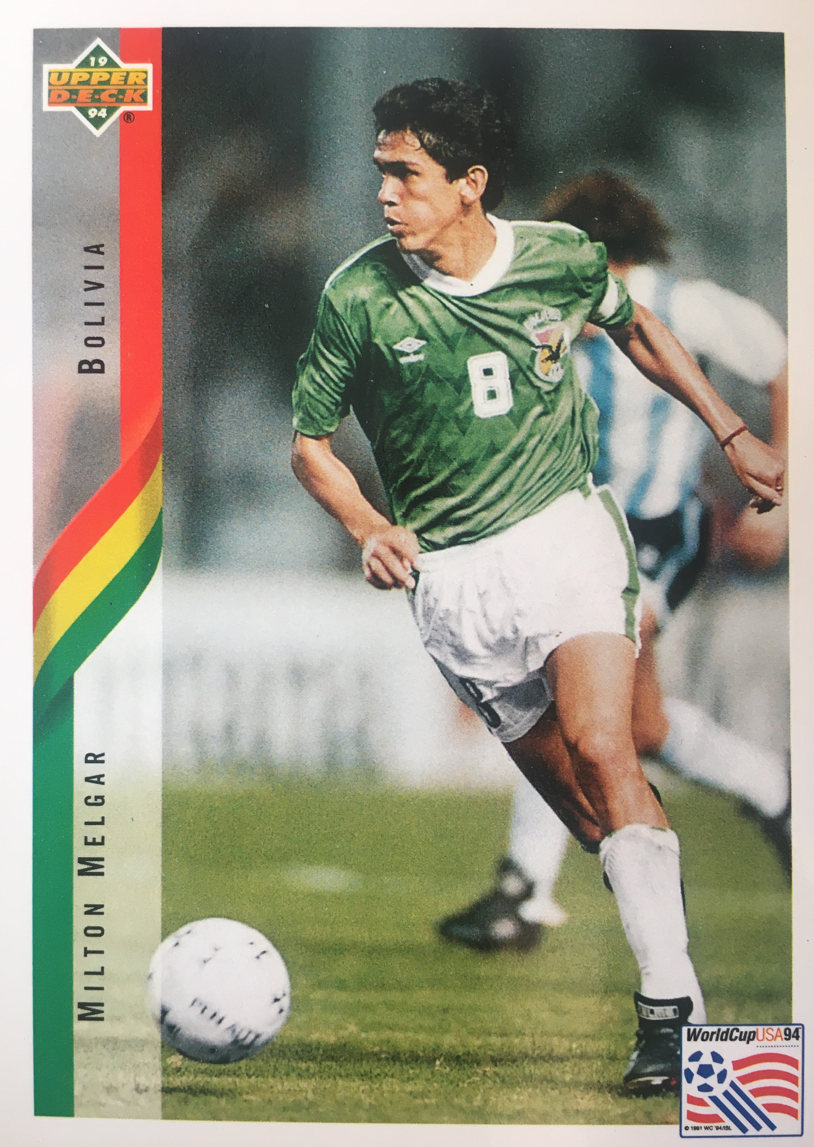 Bolivia en el Mundial de 1994, posa en el Soldier Field de Chicago antes de su debut ante Alemania: Quinteros, Trucco, Rimba, Soria y Sandy. De cuclillas: Sánchez, Borja, Cristaldo, Melgar, Baldivieso y Ramallo.