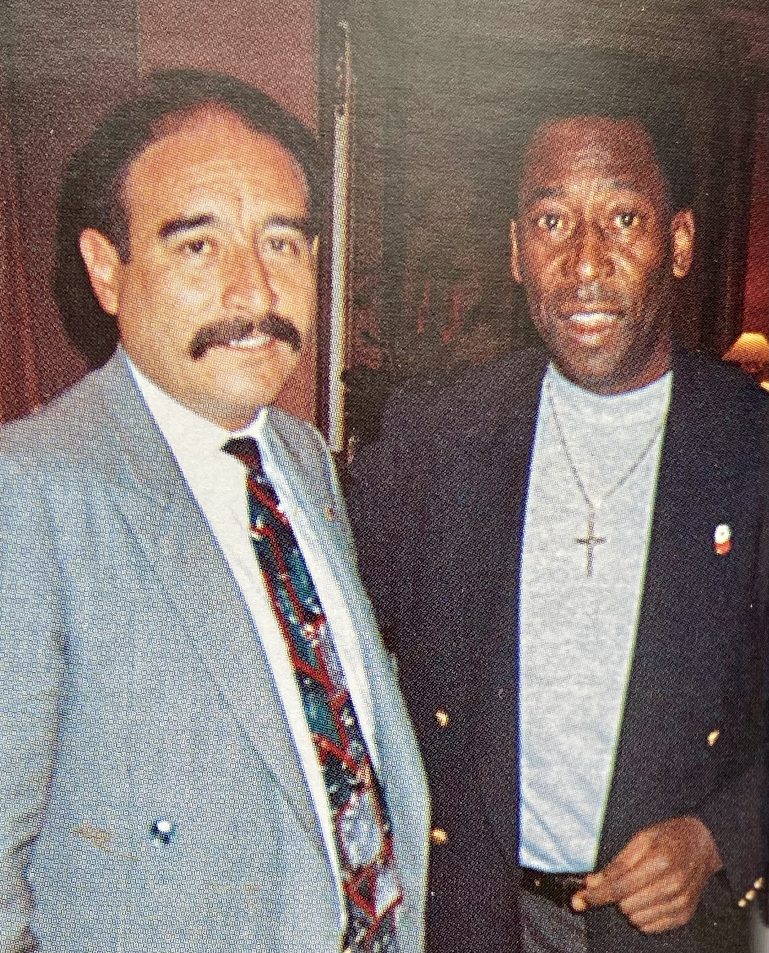Guido Loayza, presidente dee la FBF, gestor de la clasificación de Bolivia. En la imagen, con Pelé en el mundial 94.
