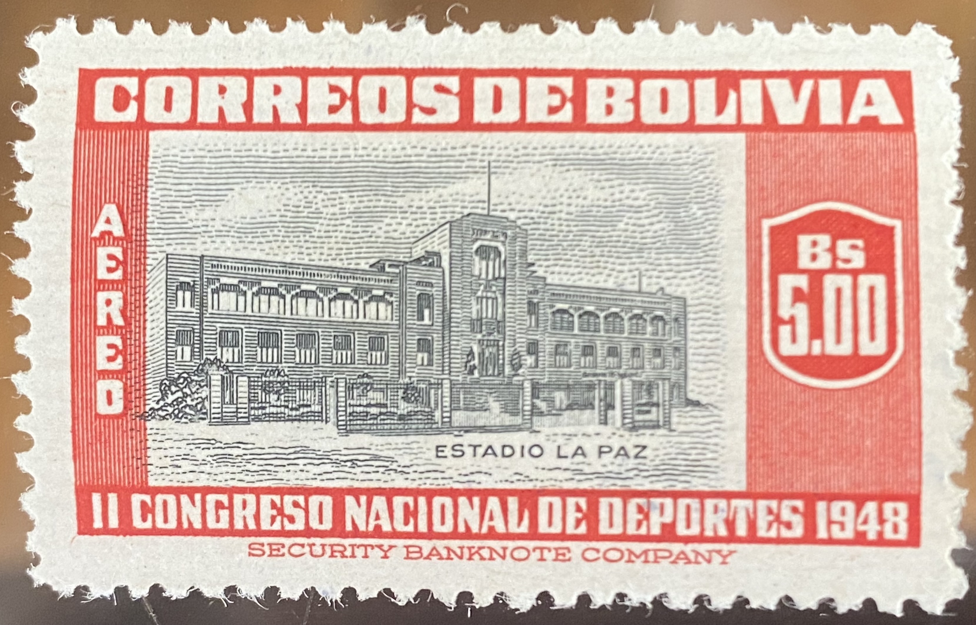 Serie de 14 sellos dedicada a varios deportes a propósito de diversos eventos nacionales e internacionales. Incluye 2 estampillas dedicadas al fútbol. La primera con la imagen de un arquero atajando un balón y la segunda una imagen de la fachada del estadio Hernando Siles (entonces con el nombre de estadio La Paz, pues tras el derrocamiento de Siles en 1930, por un tiempo se le cambió el nombre), ambas en ocasión del II Congreso Nacional de Deportes llevado a cabo en 1948.