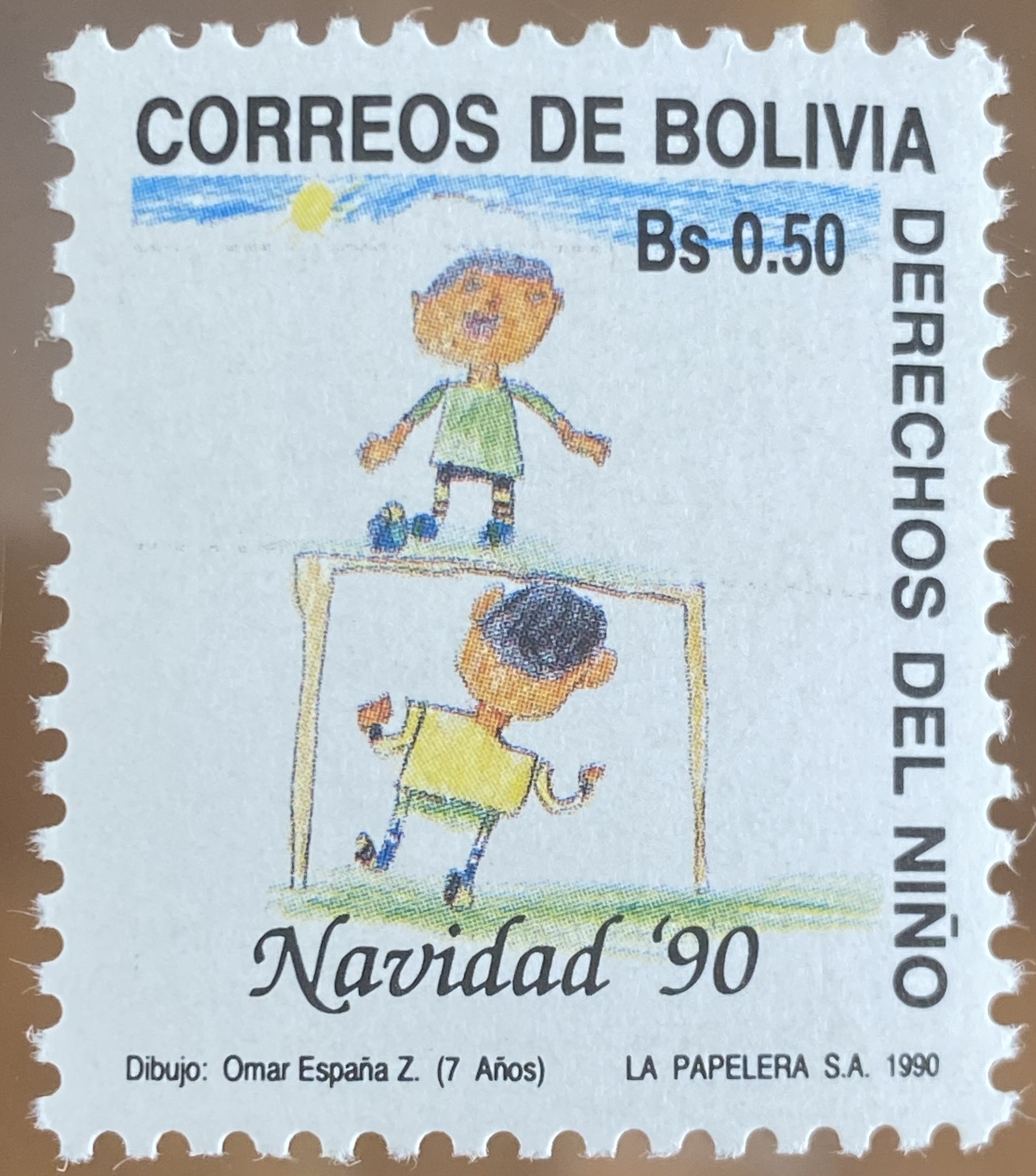 En ocasión de las fiestas de Navidad, se emitió 1 estampilla dedicada a los derechos del niño con un hermoso dibujo infantil de dos niños jugando al fútbol.